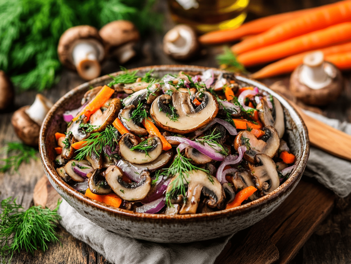 Ukrainian Pickled Mushroom Salad is not just a dish—it’s a journey into the heart of Ukraine’s culinary traditions, where nature, preservation, and bold flavors come together harmoniously. Ukraine, with its vast forests and fertile lands, has a rich history of foraging for wild mushrooms, which plays a central role in its cuisine. This salad, a celebration of earthy mushrooms, fragrant herbs, and the bright tang of pickling, is a perfect representation of the country’s deep-rooted connection to its natural resources and agricultural abundance.