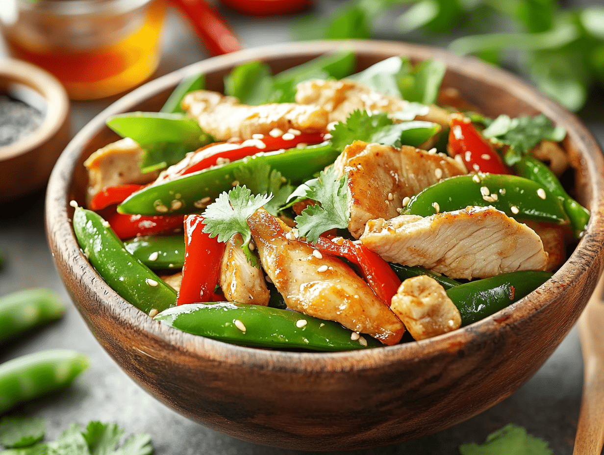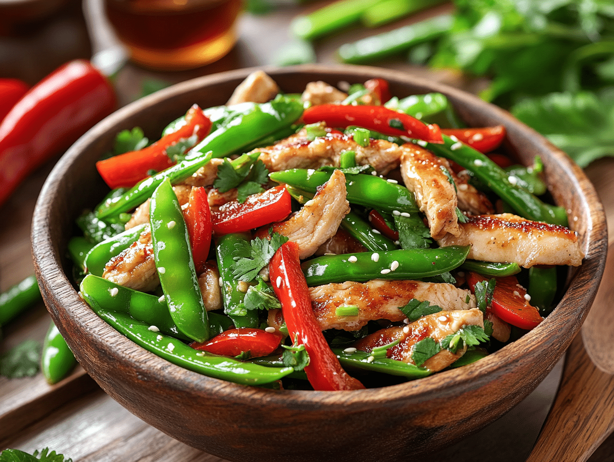 Prepared in just 30 minutes, this salad is perfect for any occasion, whether itโs a light lunch, a flavorful dinner, or a refreshing dish for entertaining. Nutritious and vibrant, it showcases how an understanding of Chinese culinary principles can be used to create something familiar yet exciting. The Chinese Chicken and Snow Pea Salad isnโt just a meal; itโs a celebration of freshness, flavor, and the art of balance in cooking.