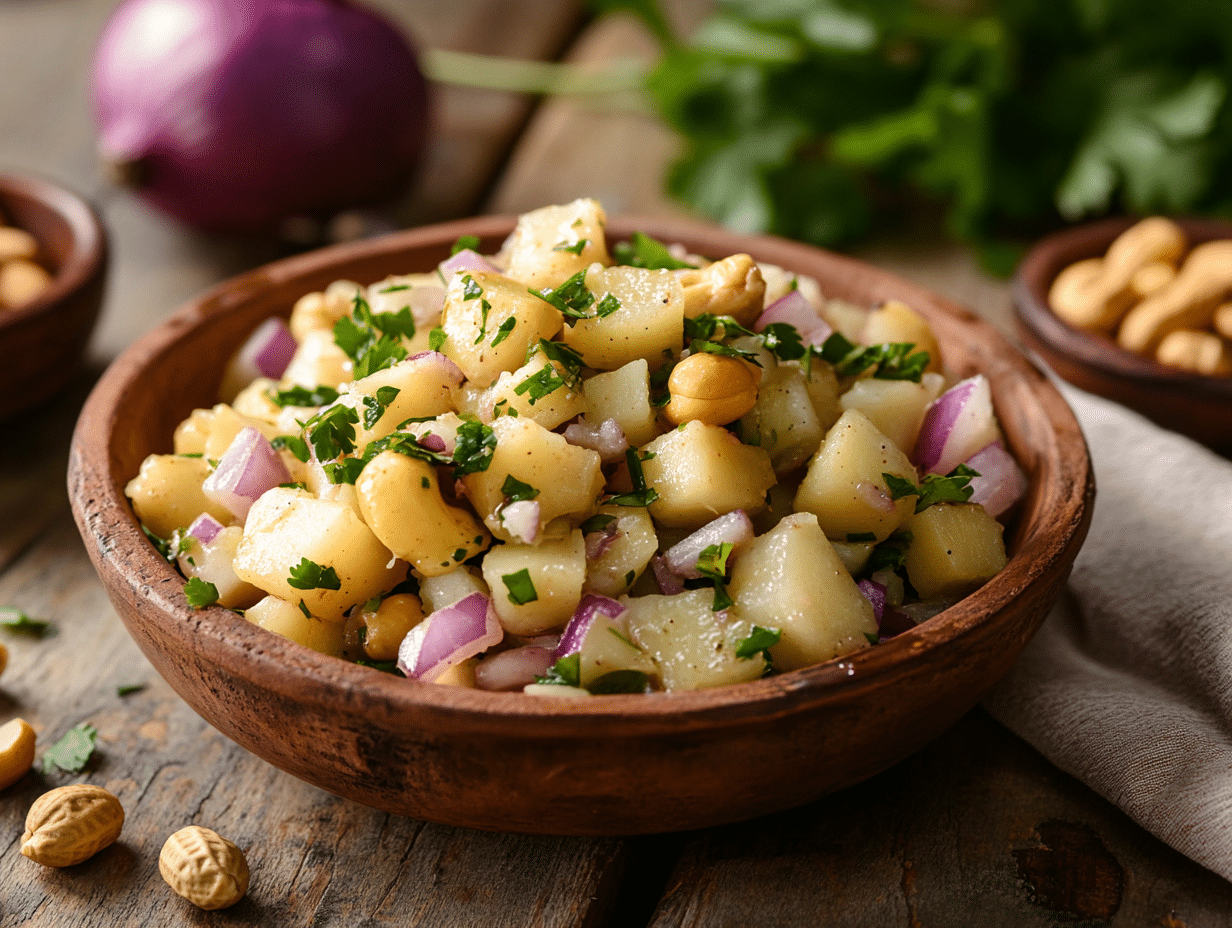 Bolivian cuisine is deeply rooted in the country’s indigenous traditions and rich agricultural diversity. One of the most beloved ingredients in Bolivian cooking is “yucca”, also known as cassava, a starchy root vegetable that has been a staple food for centuries. Another key ingredient in Bolivian cuisine is “peanuts”, which are widely used in soups, sauces, and salads. The “Bolivian Yucca and Peanut Salad” is a delightful celebration of these two ingredients, blending them with complementary flavors to create a dish that is both nutritious and flavorful.