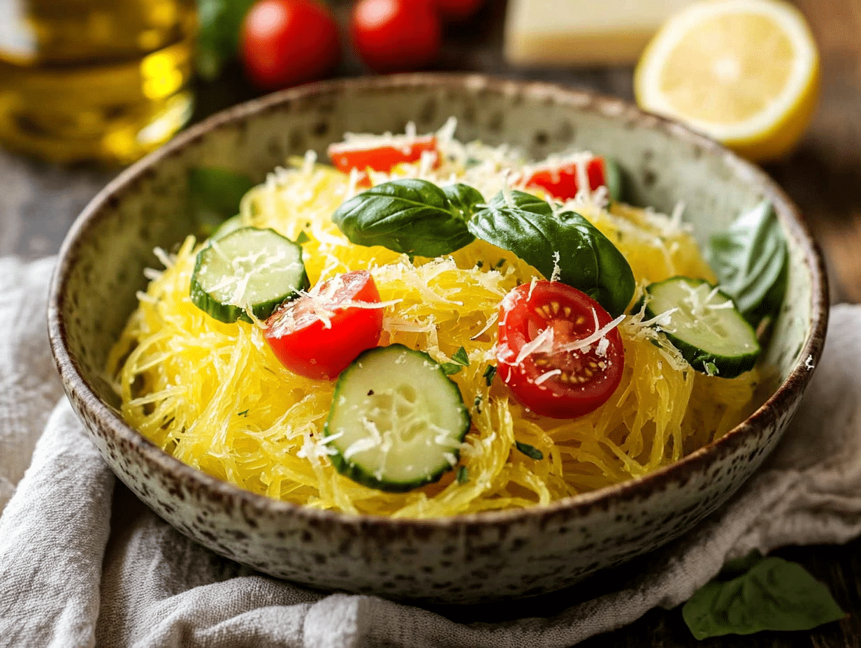 Spaghetti Squash Salad with Lemon-Parmesan Dressing is a refreshing and wholesome dish that takes a creative approach to traditional salads. This recipe is deeply inspired by Mediterranean cuisine, known for its focus on fresh, vibrant ingredients and balanced flavors. The combination of roasted spaghetti squash with crisp vegetables, fresh herbs, and a zesty Parmesan-based dressing makes this dish both satisfying and nutritious.