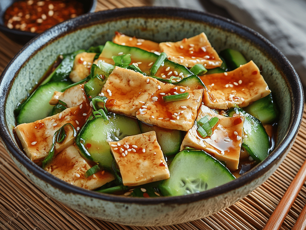 Chinese Bean Curd and Cucumber Salad is a simple yet deeply flavorful dish that showcases the artistry of Chinese cold salads. Whether enjoyed as an appetizer, side, or light meal, it embodies the best aspects of northern Chinese cuisine—bold flavors, satisfying textures, and fresh ingredients. For those exploring plant-based Chinese dishes, this salad provides an excellent introduction to the versatility of bean curd and the depth of traditional Chinese seasonings.