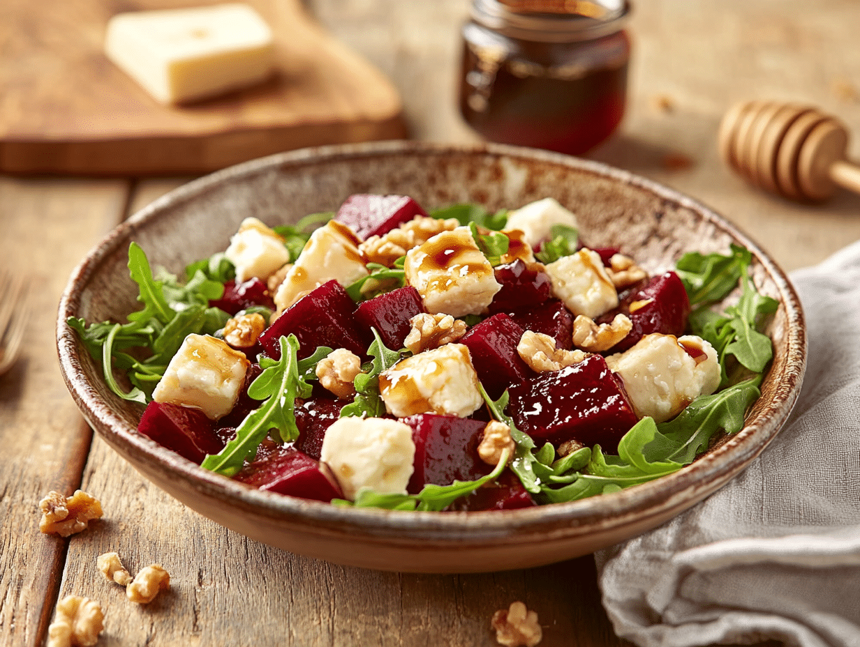 Mongolian cuisine is deeply rooted in the nomadic lifestyle, where dairy, meat, and root vegetables make up the foundation of traditional dishes. The Mongolian Sheep’s Cheese and Beet Salad is a contemporary take on these time-honored ingredients, combining the rustic, earthy essence of Mongolian dairy with the natural sweetness of beets. This dish is a celebration of balance—earthy meets tangy, soft meets crunchy—all while staying true to the simplicity and resourcefulness of Mongolian food traditions.