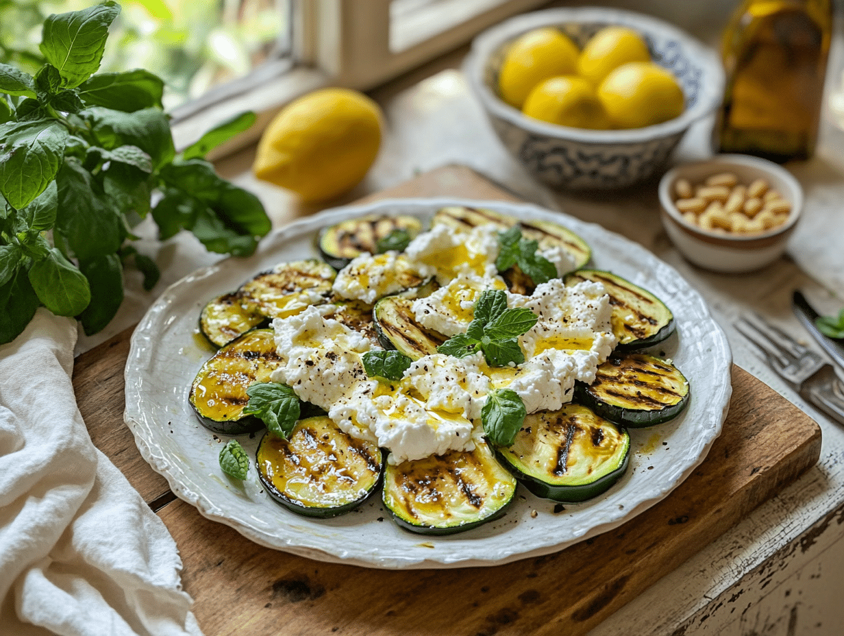 Grilled Zucchini and Ricotta Salad is a recipe that embodies the spirit of simplicity, seasonality, and Mediterranean tradition. This dish is more than just a collection of ingredients — it’s a celebration of summer’s bounty and the art of using fresh produce in creative yet uncomplicated ways. With its smoky, tender zucchini and creamy dollops of fresh ricotta, it delivers both on flavor and visual appeal, making it a perfect choice for a light meal or an elegant side dish.