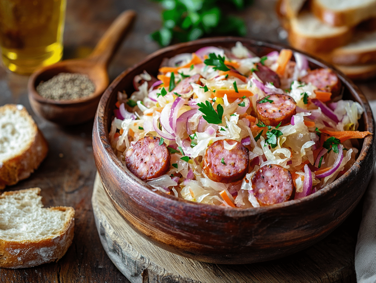 Slovakian cuisine is a rich tapestry of flavors influenced by centuries of tradition, geography, and cultural diversity. One of its cornerstones is fermented foods, with sauerkraut being a staple ingredient in many dishes. The Slovakian Sauerkraut and Sausage Salad is one such dish that embodies the heartiness and tangy depth of Eastern and Central European flavors.