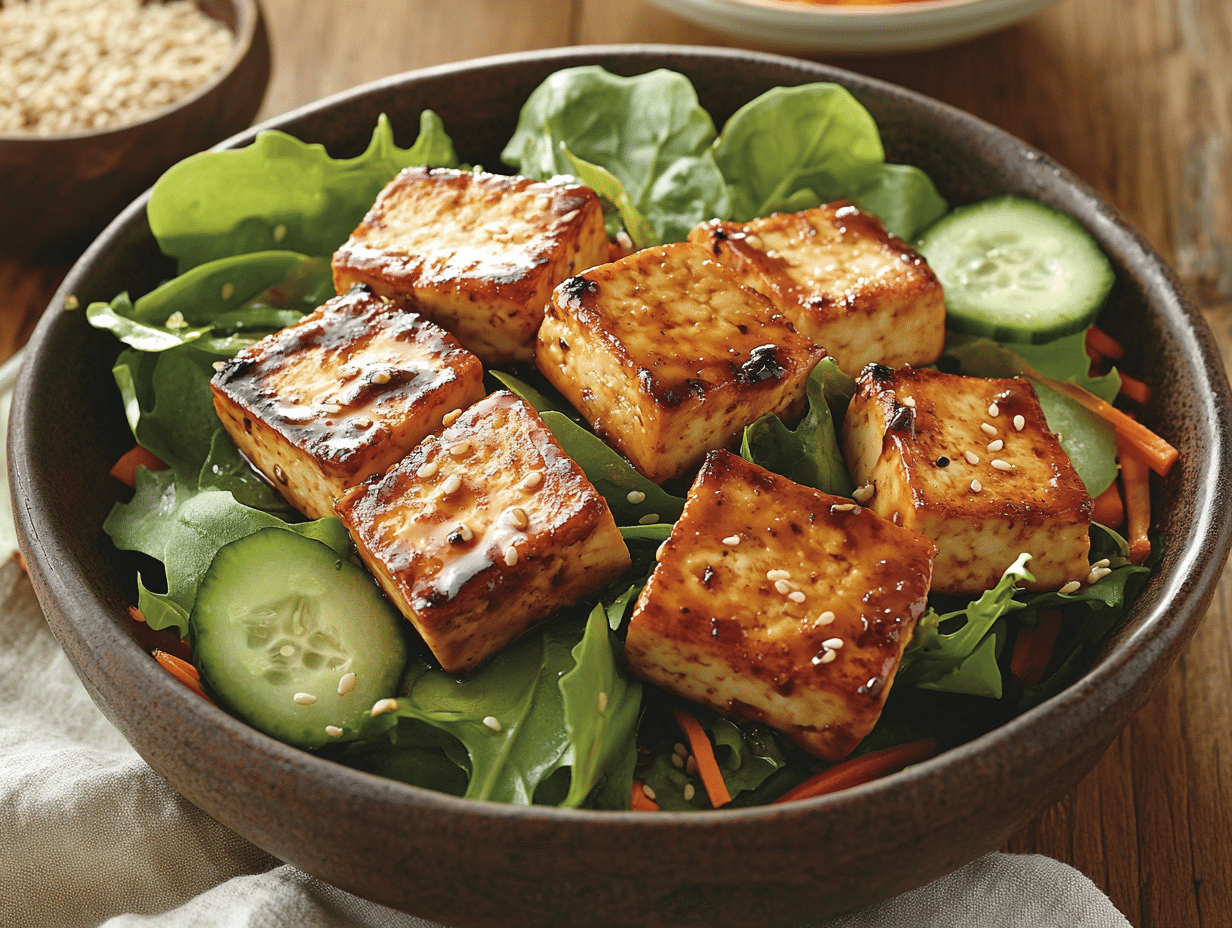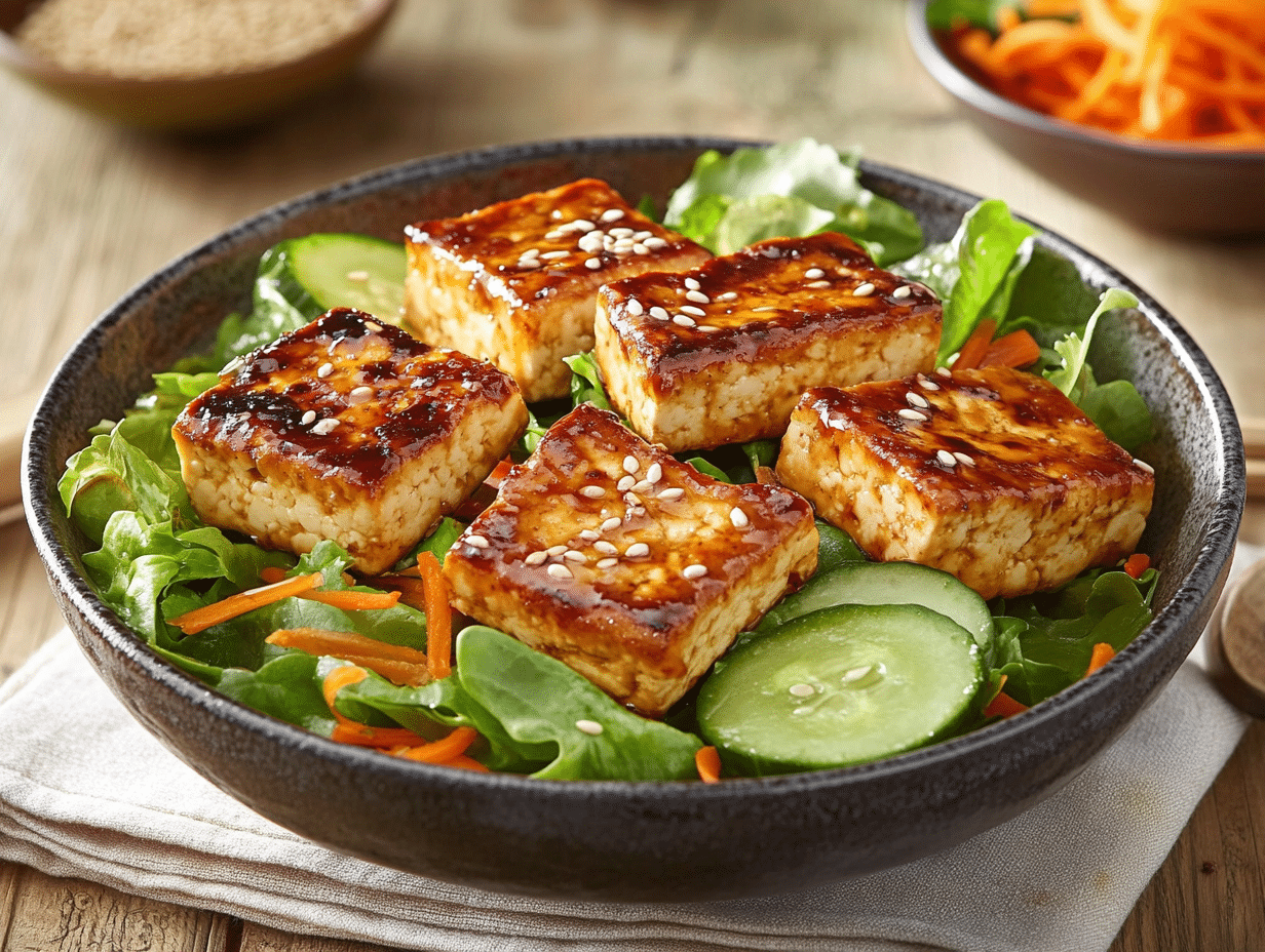 Miso-Marinated Tofu Salad with Sesame Dressing is a dish that beautifully showcases the depth of Japanese flavors while offering a light yet satisfying meal. Rooted in traditional Japanese cuisine, this salad features tofuโa staple protein in plant-based and Asian dietsโcombined with a rich miso marinade that enhances its umami essence. The final dish is completed with crisp greens, fresh vegetables, and a creamy sesame dressing, perfectly balancing taste, texture, and nutrition.