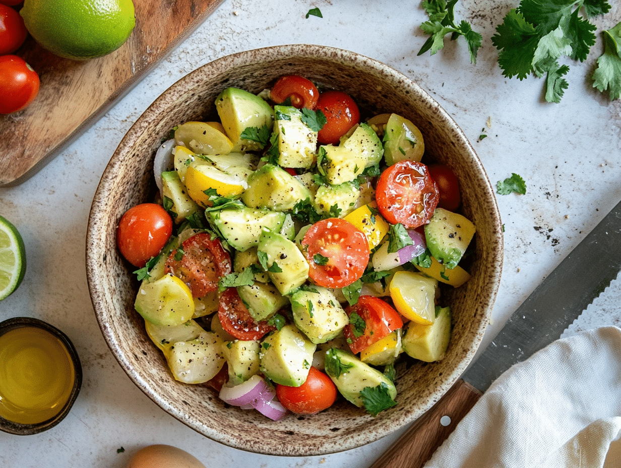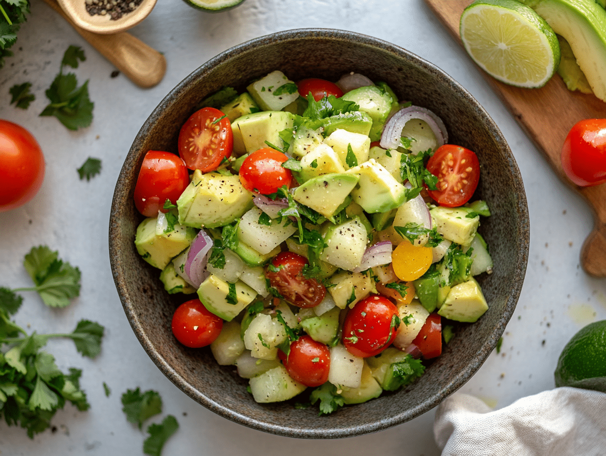 Not only is this salad delicious, but it is also packed with nutrients. Hearts of palm are a great source of important minerals like potassium and fiber, while avocados provide healthy monounsaturated fats that promote heart health. The combination of fresh vegetables makes this dish rich in antioxidants, vitamins, and healthy fats, making it both flavorful and nourishing.