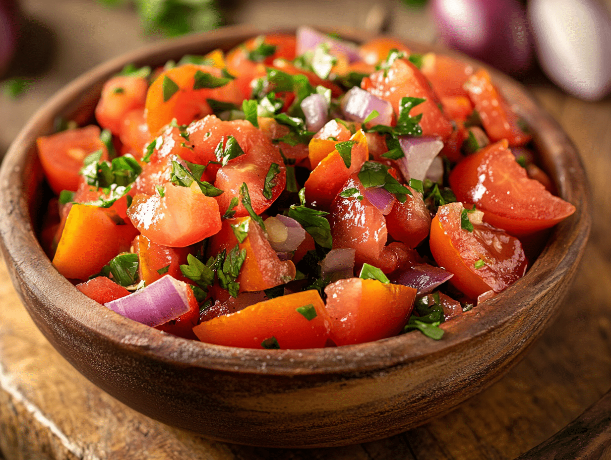 Chilean Ensalada Chilena, or Tomato and Onion Salad, is a quintessential dish in Chilean cuisine that exemplifies the country’s ability to make the most of simple, fresh ingredients. This salad has become a national culinary treasure, representing the flavors and traditions of Chile in its purest form. It is more than just a side dish; it embodies the essence of Chile’s agricultural heritage and the minimalist approach that defines much of the country’s cooking.