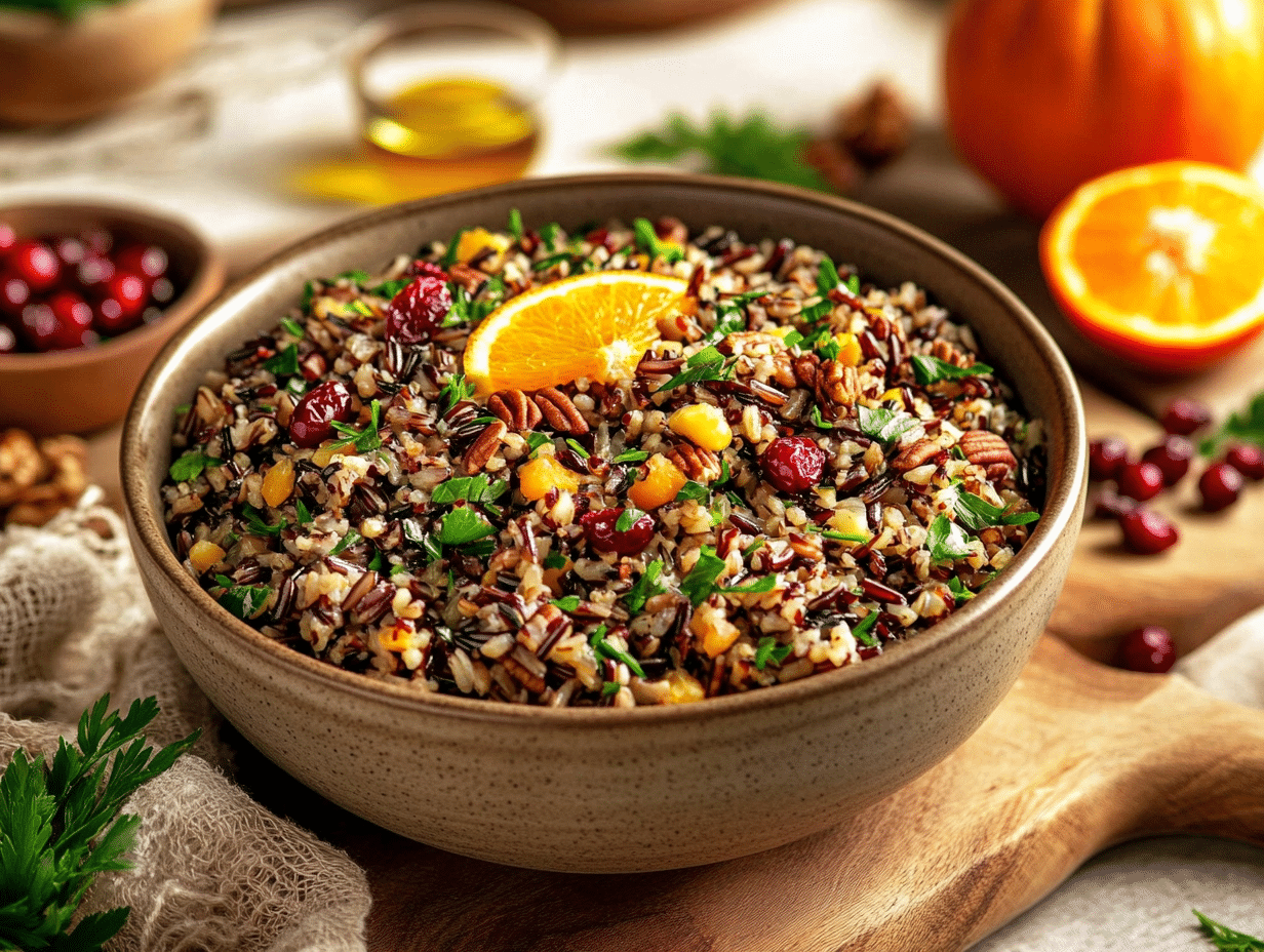 The inclusion of dried cranberries introduces a pop of sweetness and tanginess that complements the savory wild rice. Cranberries, often associated with traditional fall and winter recipes, evoke holiday nostalgia while also bringing an antioxidant boost. Toasted pecans, on the other hand, enrich the salad with a buttery crunch, perfectly grounding the flavors while adding heart-healthy fats. These nuts are a familiar ingredient in many fall-inspired cuisines, providing a seasonal touch and a luxurious texture to the dish.