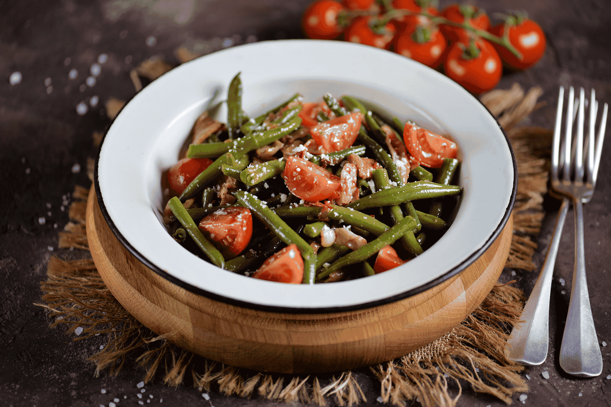 This bacon and green bean salad is one of my favourites! It only has six ingredients, but it is packed with flavour! French string beans are loaded with fibre and vitamin A and have no saturated fat! This is a guilt-free salad packed with a punch.