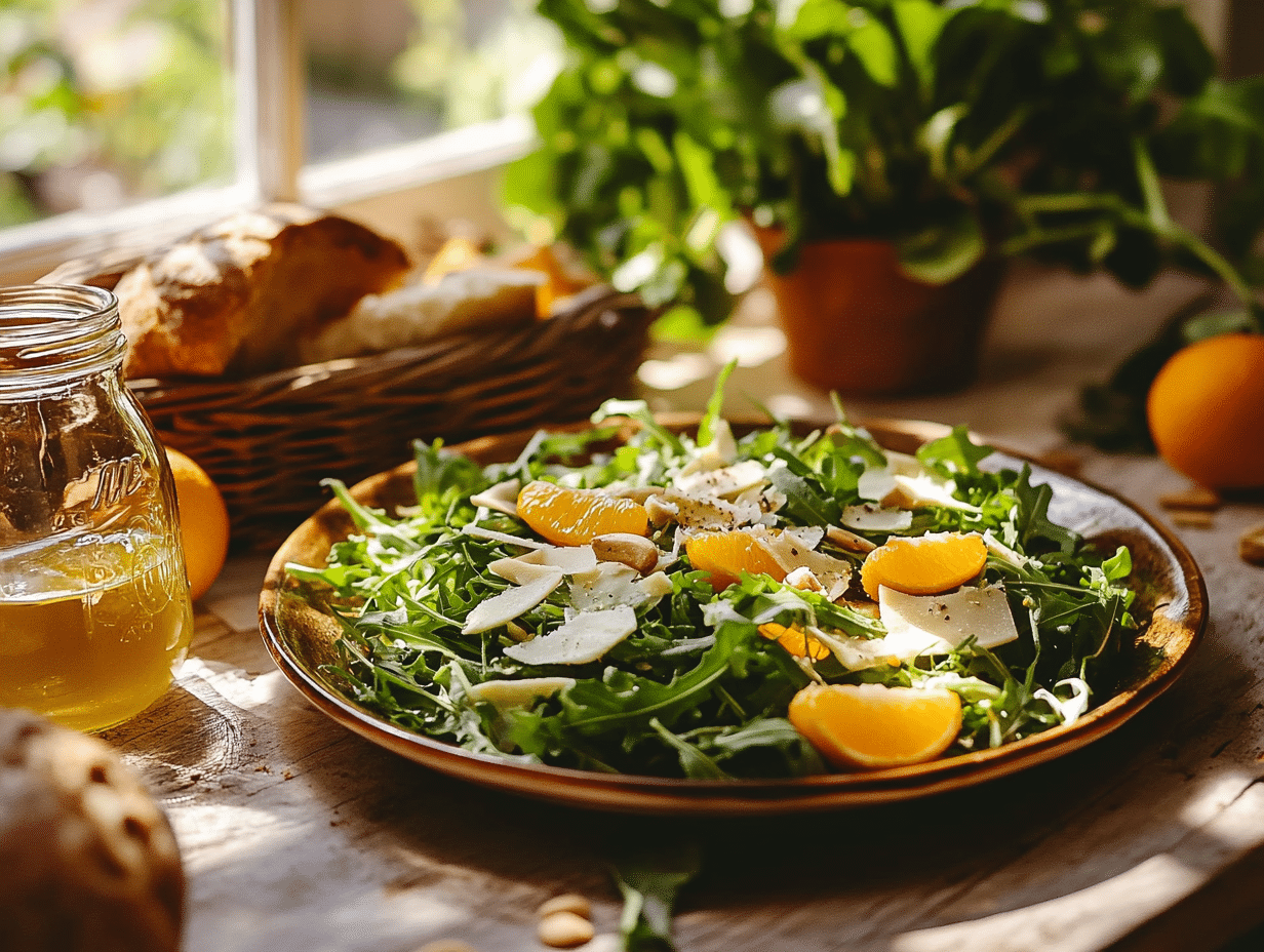 The Fennel and Orange Salad with Arugula is a vibrant and refreshing dish that encapsulates the essence of Mediterranean cuisine. This salad combines simple, fresh ingredients to create an elegant balance of flavors and textures, making it a perfect example of the region’s culinary ethos: using seasonal produce and letting their natural flavors shine. The dish is rooted in the Mediterranean’s long-standing affinity for combining crisp greens, zesty citrus, and earthy elements into light yet satisfying meals.