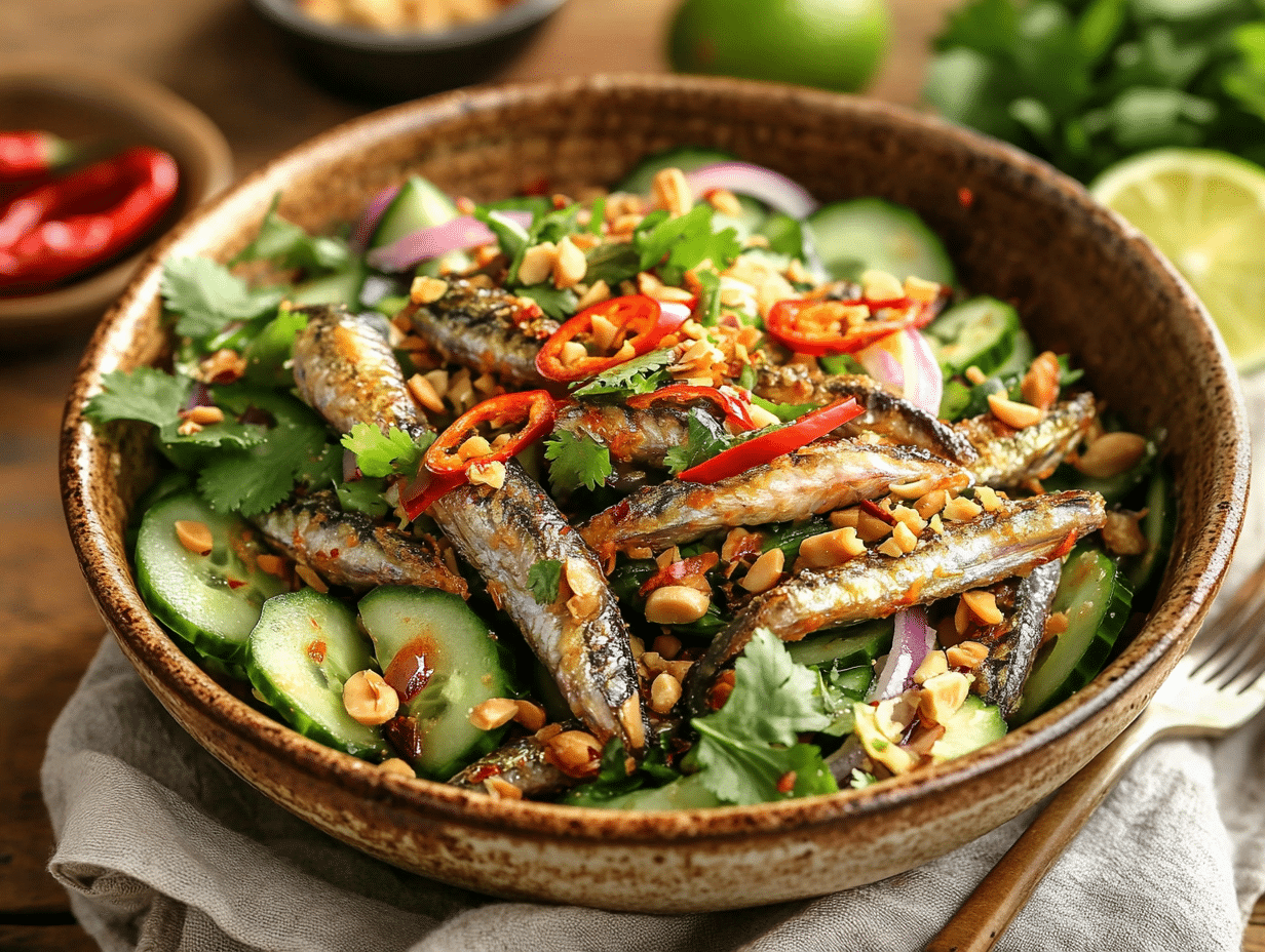 Malaysian cuisine is a melting pot of flavors, drawing influences from Malay, Chinese, Indian, and indigenous culinary traditions. One of the defining aspects of Malaysian cooking is its ability to balance bold flavors—spiciness, saltiness, sweetness, and tanginess—in a single dish. The Malaysian Spicy Anchovy Salad, also known locally as Kerabu Ikan Bilis, is a perfect example of this harmonious blend.