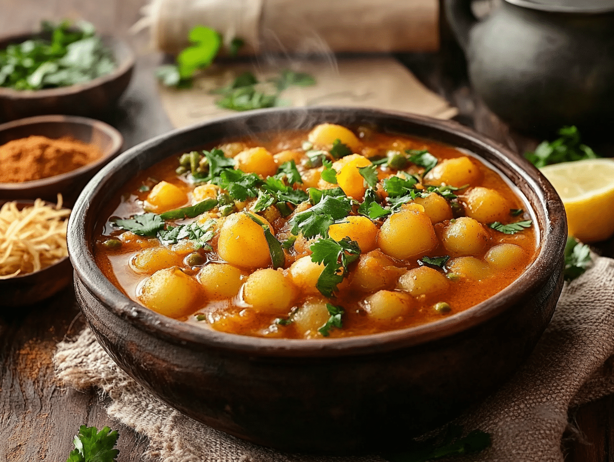 One of the dishโs most attractive features lies in its balance of flavors and textures. The base is a hearty mix of boiled yellow peas and potatoesโa staple among South Asian vegetarian fare but elevated through clever seasoning. The earthiness of these ingredients is lifted with the addition of sour tamarind pulp, aromatic cumin, spicy red chili powder, and a dash of mustard oil, which adds a pungent, commanding depth to the dish. This is then balanced with fresh coriander for herbaceous brightness and garnishes of crisp fried onions and sevd, providing a satisfying crunch. For those who love layering flavors, a squeeze of fresh lemon provides an optional citrusy tang to tie everything together.