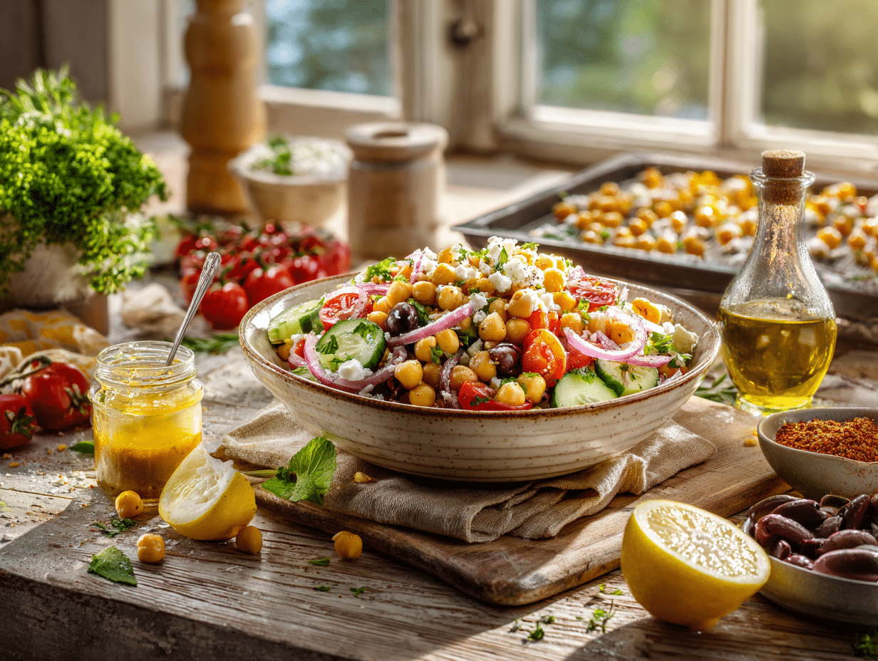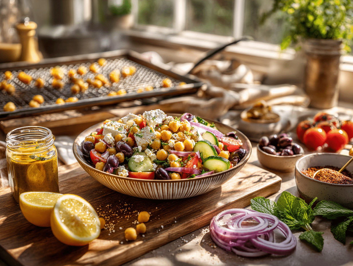 The Mediterranean Chickpea Salad with Feta and Olives is a celebration of the vibrant, sun-soaked ingredients and time-honored culinary traditions that span the coasts of the Aegean Sea to the Levant. Rooted in the rustic classics of Greek and Eastern Mediterranean cuisines, this recipe bridges both pantry staples and fresh produce to craft a dish that is as colorful and textural as it is deeply satisfying.