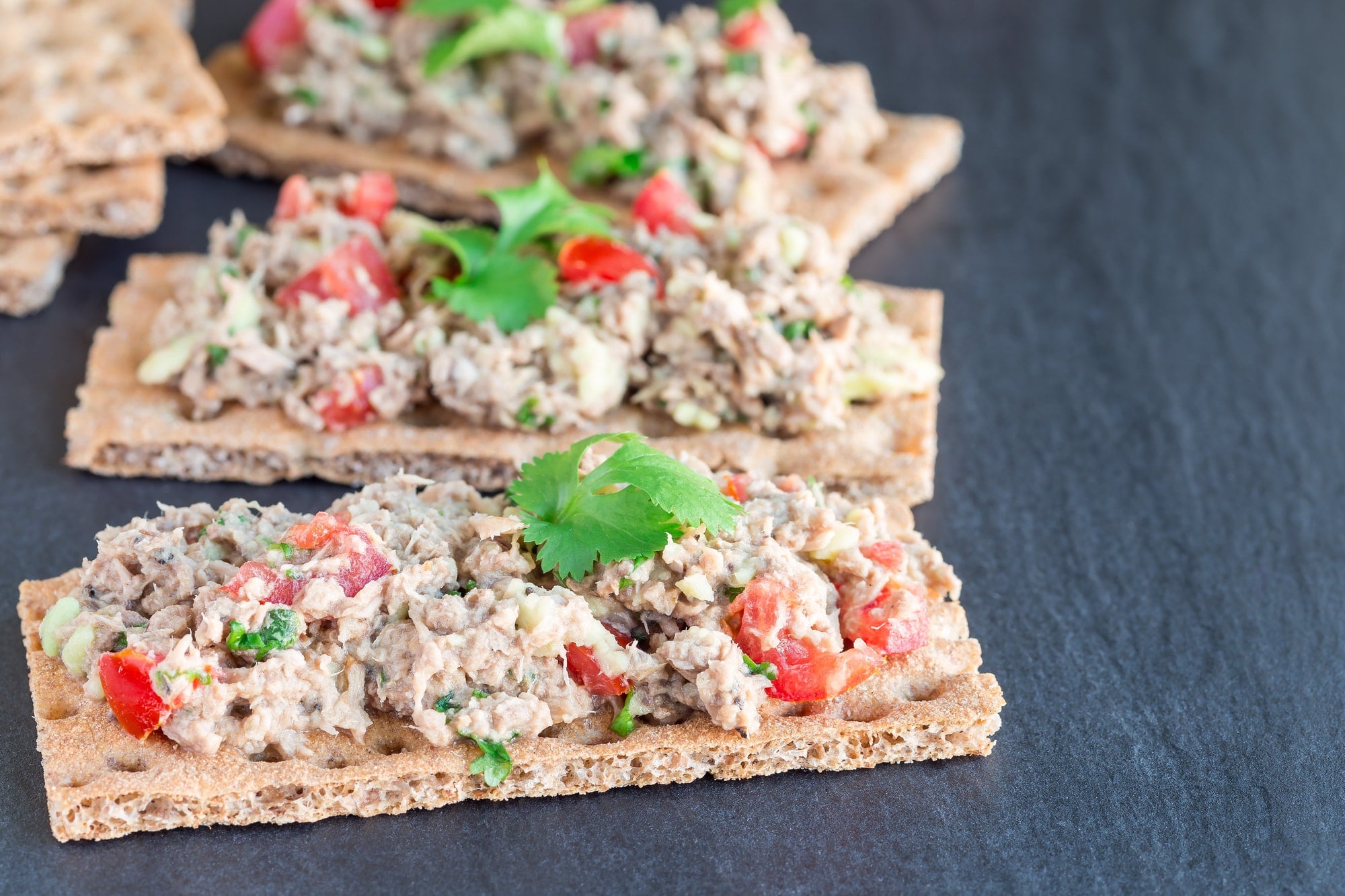Luckily, this Mayo-less Tuna Salad can be thrown together very quickly, and it makes a great quick appetizer or tasty lunch. Serve it with fresh crusty bread or a few whole-wheat crackers. Iโd imagine there are hundreds of delicious variations, like adding some chickpeas or mashed avocado.