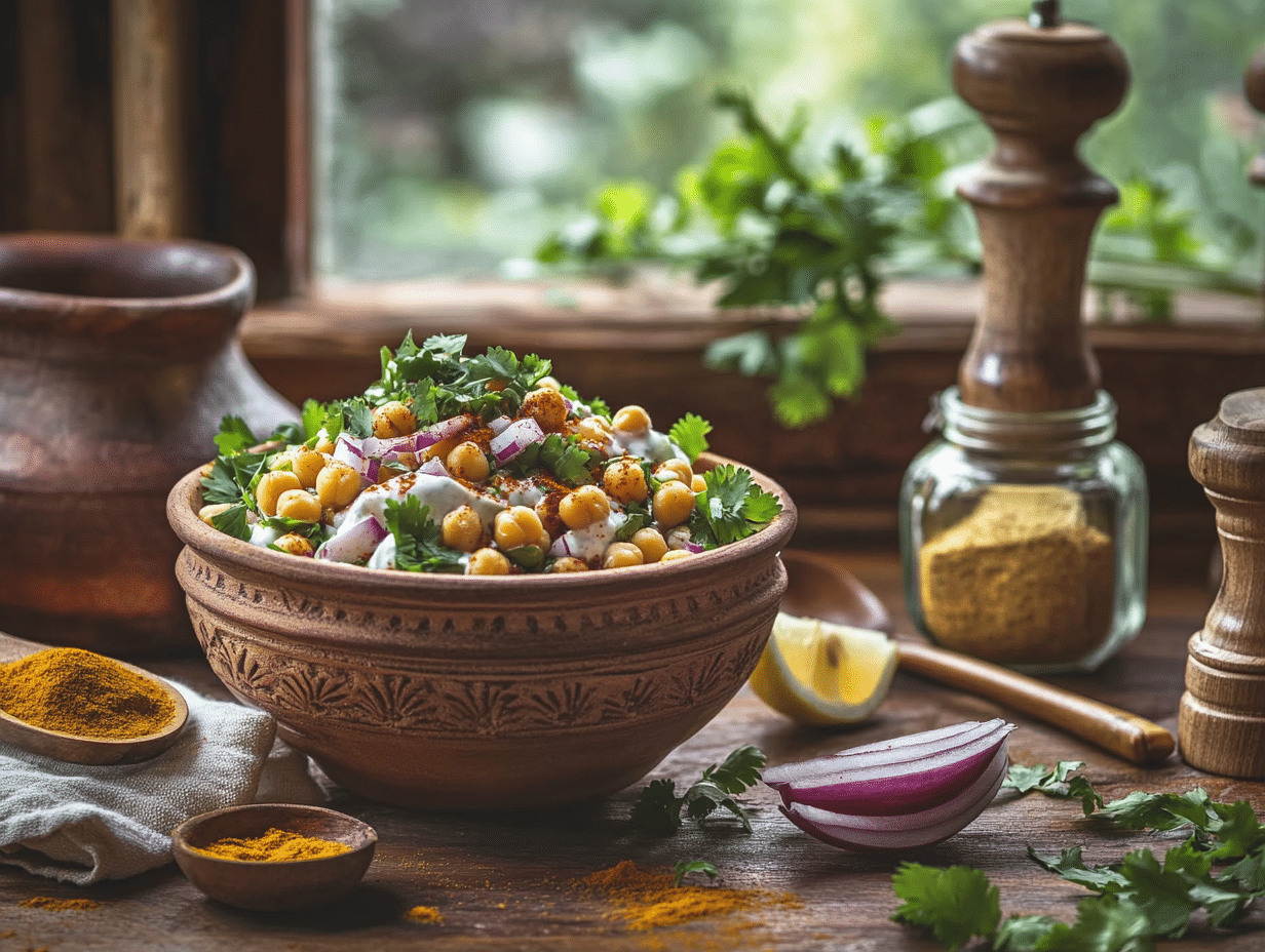 In recreating this dish, one can’t ignore the influence of Indian chaat—savory street snacks that are beloved for their vibrant flavors and textures. This salad echoes the essence of chaat, with its bold seasoning, creamy layers, and subtle bursts of freshness. It’s a dish that feels both indulgent and nutritious, perfect for a light lunch, dinner, or even as an accompaniment to grilled meats or flatbreads.