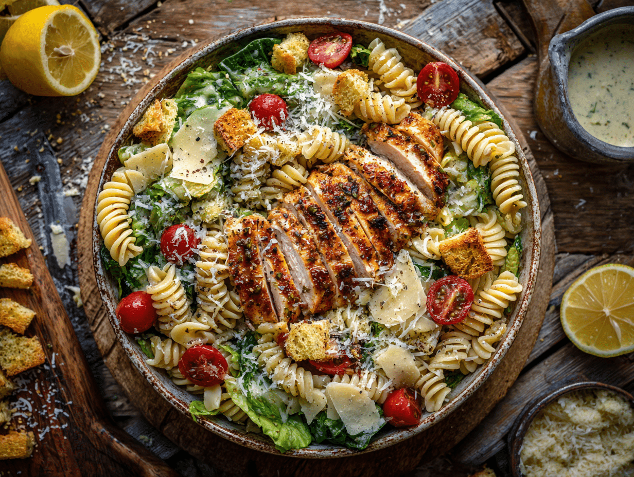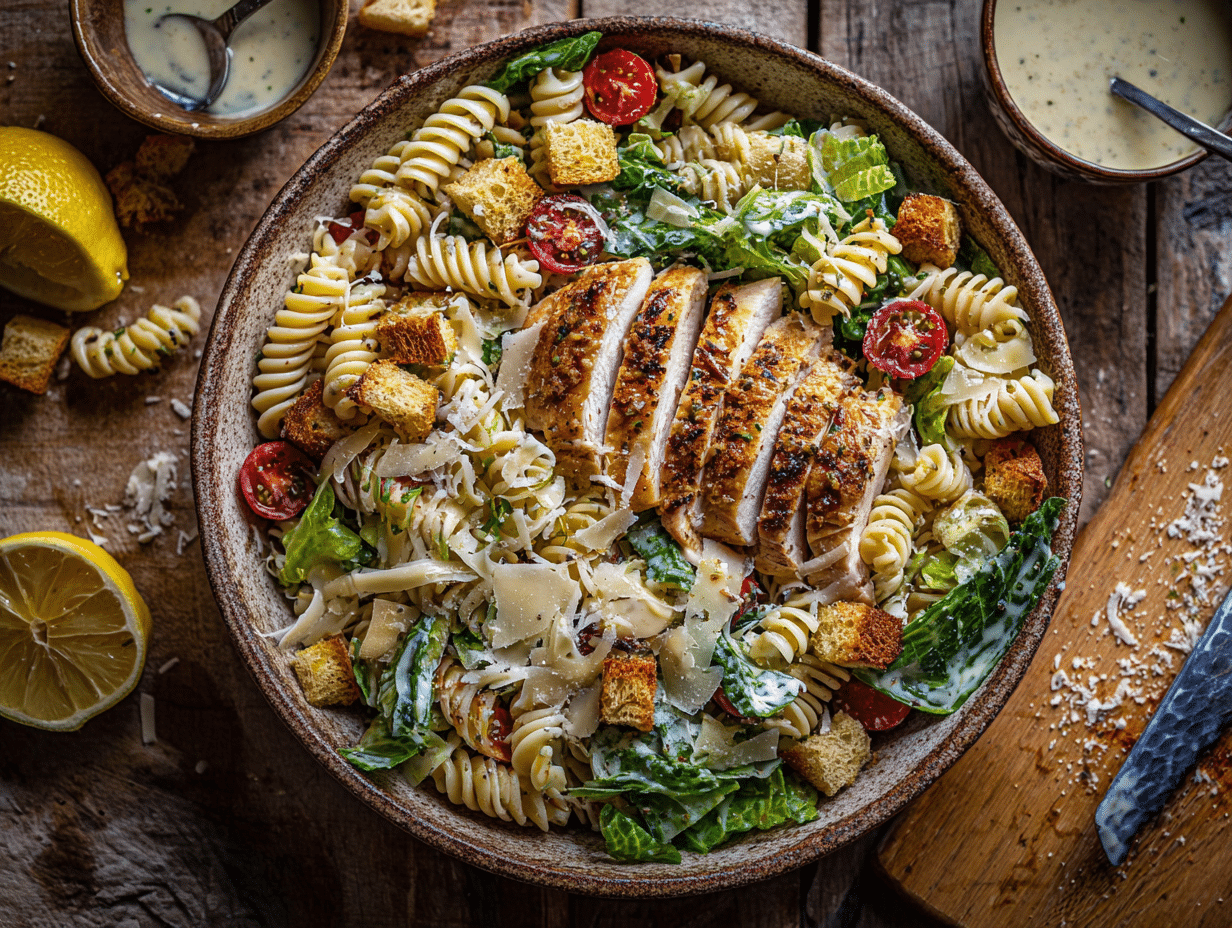 The Chicken Caesar Pasta Salad draws on a rich culinary legacy and adds a contemporary twist, making it a perfect dish for today’s fast-paced but flavor-focused home cook. At its heart is the classic Caesar salad—a dish born of necessity and ingenuity in 1920s Tijuana, Mexico, where restaurateur Caesar Cardini created it with limited ingredients on hand. That original salad, with its bold garlic-anchovy dressing, crisp romaine, and crunchy croutons, has since evolved into a global staple of bistros and home kitchens alike.
