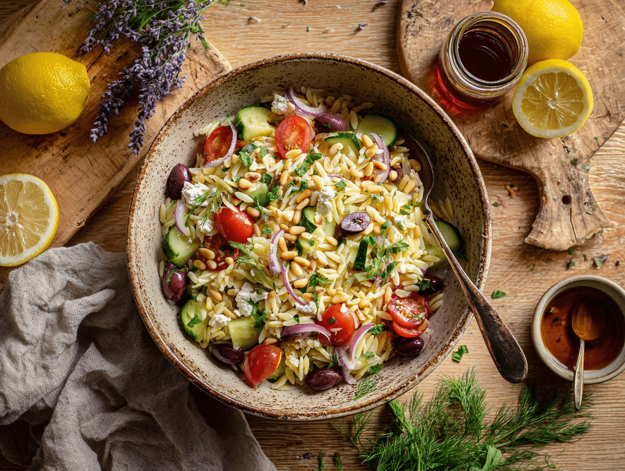 The flavor profile of this salad hinges on a lemon-oregano vinaigretteโa nod to the rustic simplicity of village-style Greek cooking. Tangy lemon juice and red wine vinegar form the acidic backbone, while Dijon mustard and a bit of honey offer balance and emulsification. Cooled orzo is dressed with the vinaigrette while still slightly warm, allowing the flavors to meld deeply into the pasta.