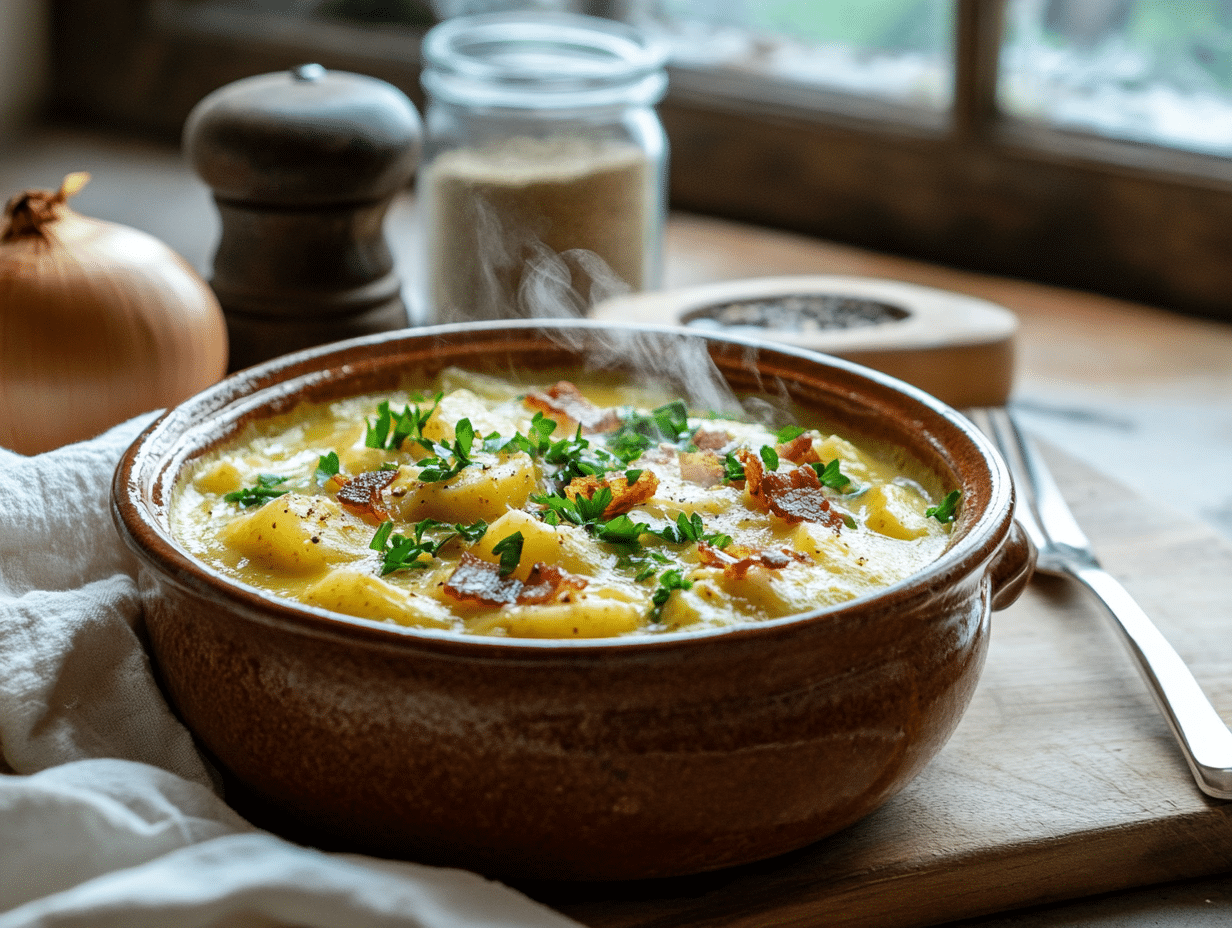 - Bacon and Bacon Fat – In traditional German cooking, pork-based products are widely used for their savory, smoky taste. The rendered fat from the crispy bacon adds a depth of umami flavor to the dressing.