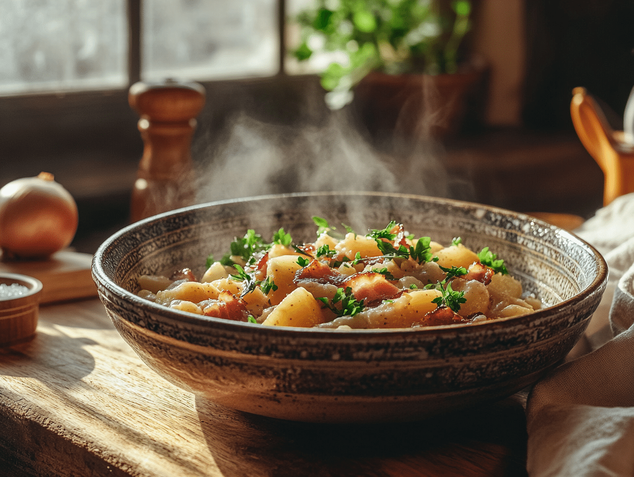 German cuisine is known for its hearty, bold flavors and rustic cooking methods, and potato salad is one of its quintessential dishes. Unlike the creamy, mayonnaise-based potato salad popular in the United States, German Mustard Potato Salad (or Kartoffelsalat mit Senf) features a zesty, tangy dressing composed mainly of mustard, vinegar, and bacon fat. This classic variation hails primarily from southern Germany, particularly the regions of Bavaria and Swabia, where warm potato salads are traditionally favored.