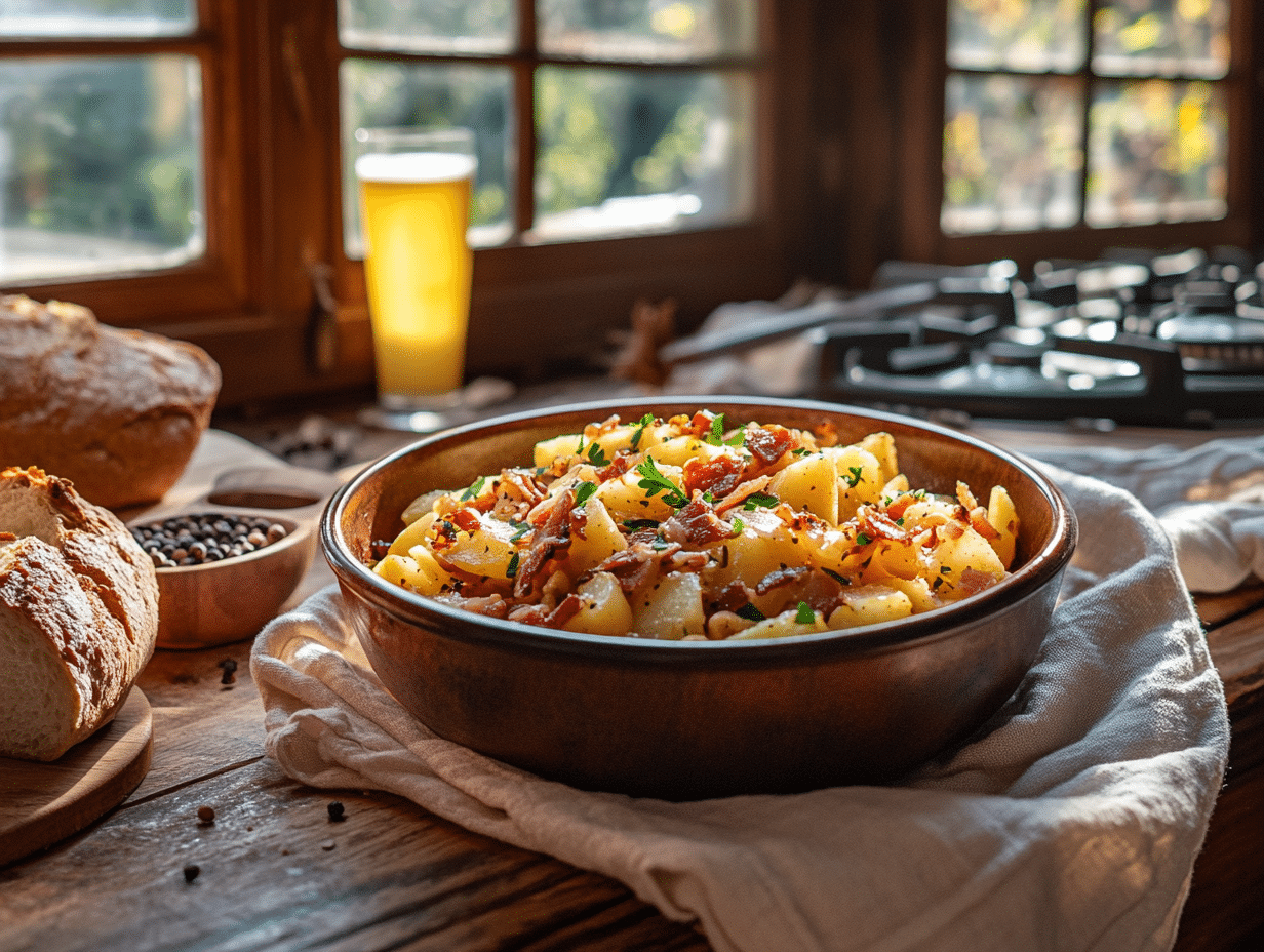 Historically, this dish emerged as a practical yet delicious solution in resourceful kitchens. Germany’s cuisine has always been shaped by its geography and climate. Potatoes, brought from the Americas in the 16th century, quickly became a dietary staple due to their adaptability and high yield. In the south of Germany—especially in regions like Bavaria and Swabia—potato-based dishes became a cornerstone of daily meals. The combination of bacon, vinegar, and onions not only provided a flavorful punch but also helped preserve ingredients for longer, an essential aspect in an agrarian lifestyle where food storage and preparation played a crucial role.