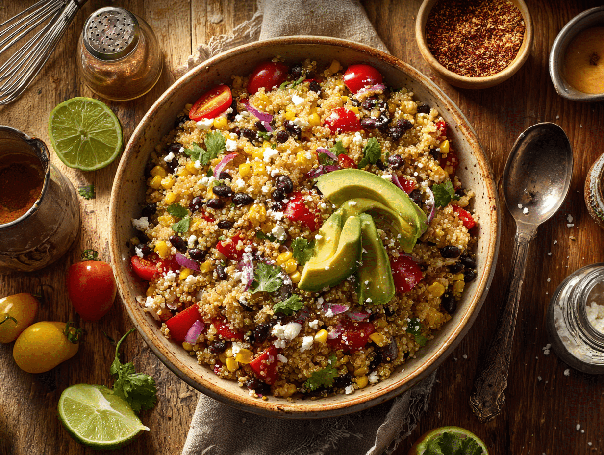 At the heart of this salad is quinoa, an ancient seed cultivated for thousands of years in the Andes Mountains of South America. Though not native to the American Southwest, quinoaโs light, nutty flavor and high protein content make it an excellent counterpart to the regionโs bold ingredients. It functions here as both a hearty foundation and a sponge for the saladโs cumin-lime vinaigrette, soaking up citrus and spice against a backdrop of savory elements. When served warm or room temperature, quinoa lends a fluffy texture that contrasts perfectly with crisp vegetables and creamy avocado.