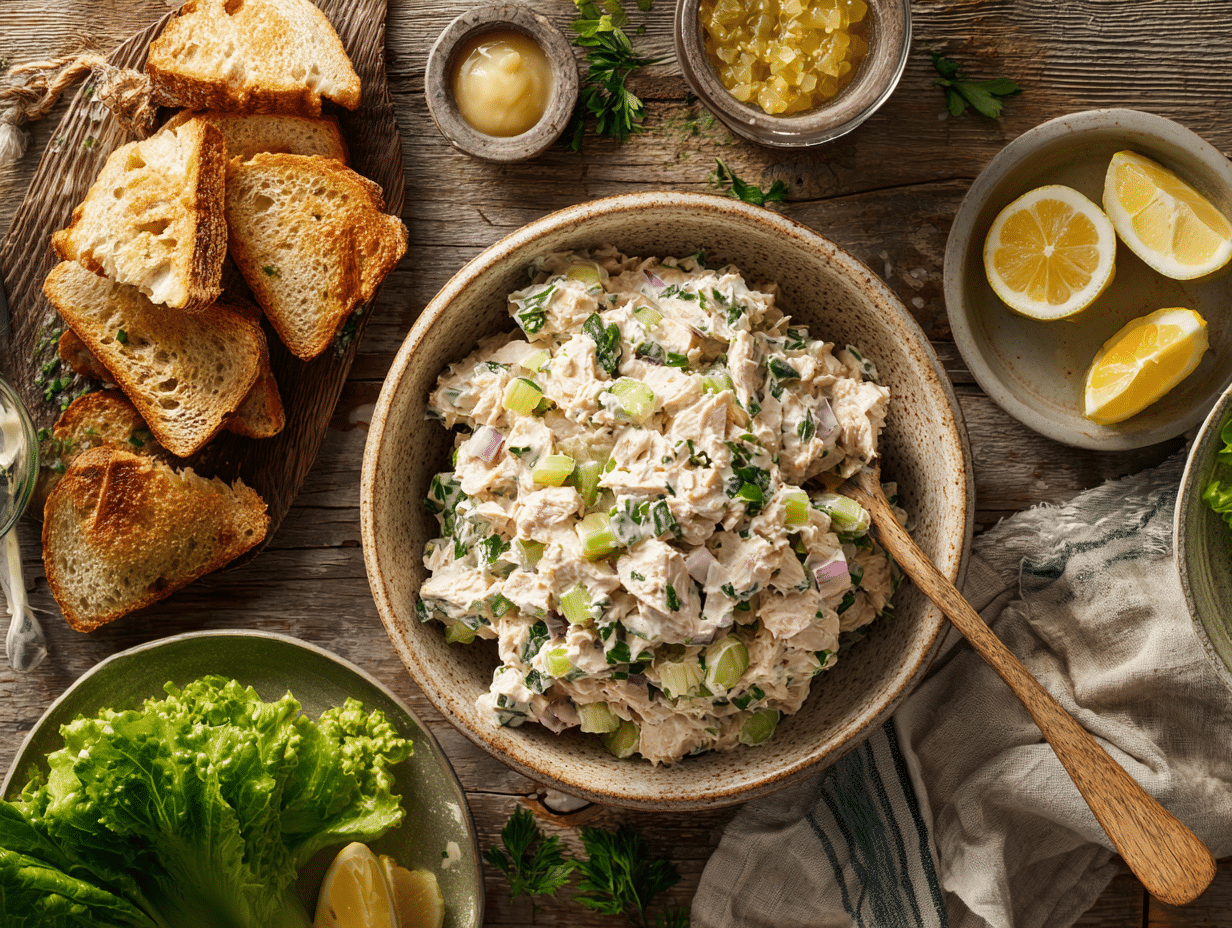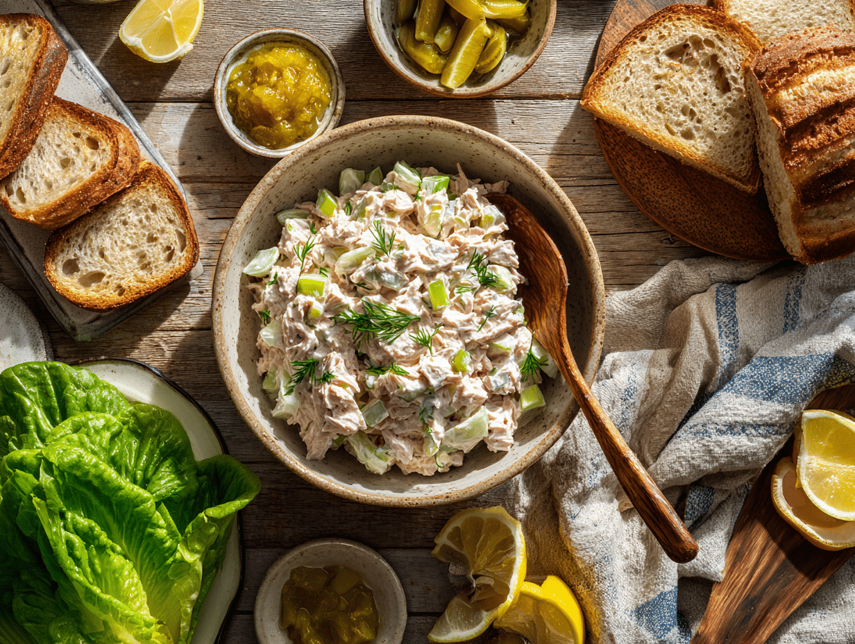 In terms of versatility, the Classic Tuna Salad with Mayo and Celery is hard to beat. Served in lettuce cups, it’s light, refreshing, and ideal for low-carb meals. Spread it generously on toasted sourdough, and it becomes the star of a satisfying sandwich. Or spoon it atop sliced garden tomatoes for a simple yet elegant salad plate.