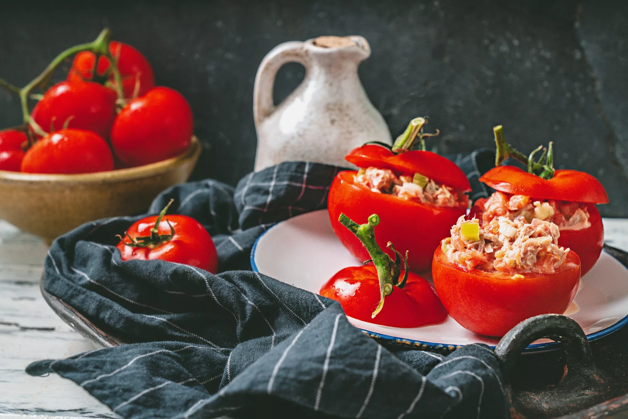 - Put the tuna mixture into the tomato cups, mounding slightly.